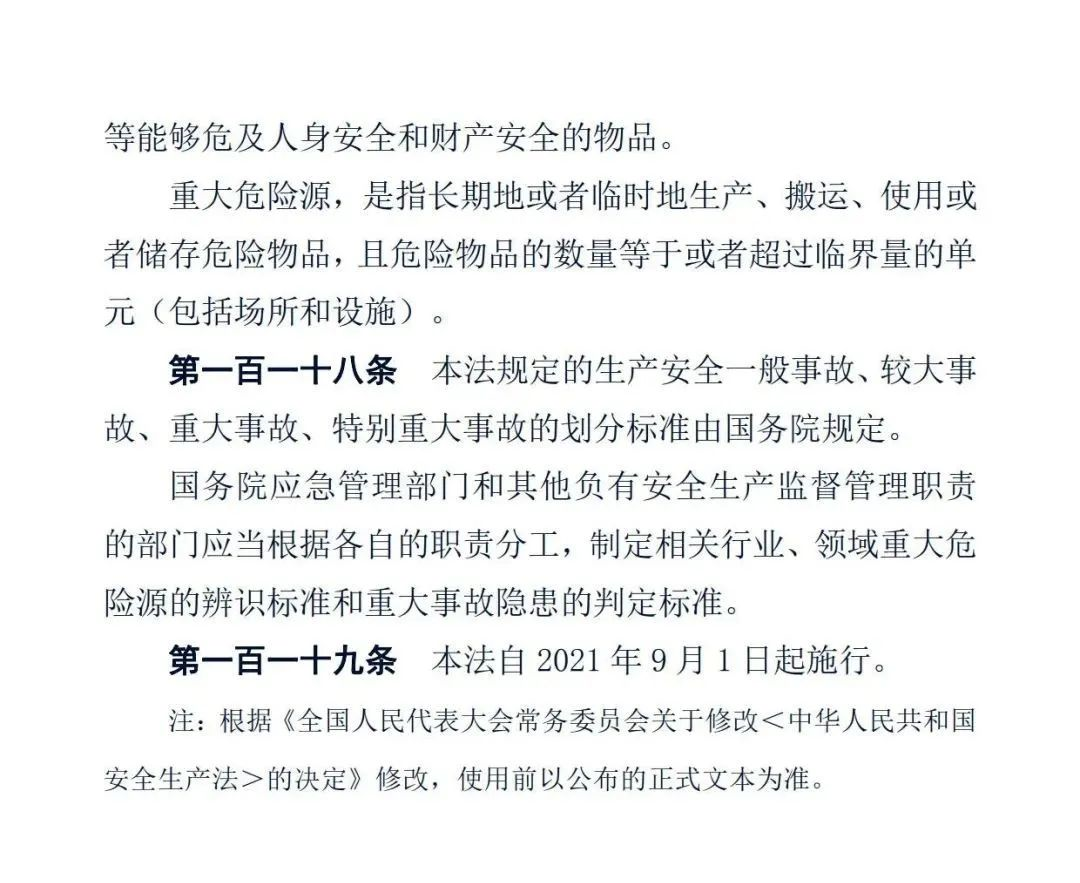 正式版《中華人民共和國安全生產(chǎn)法》